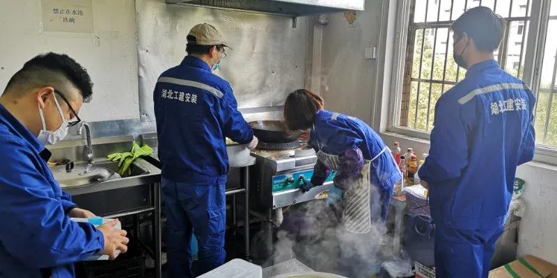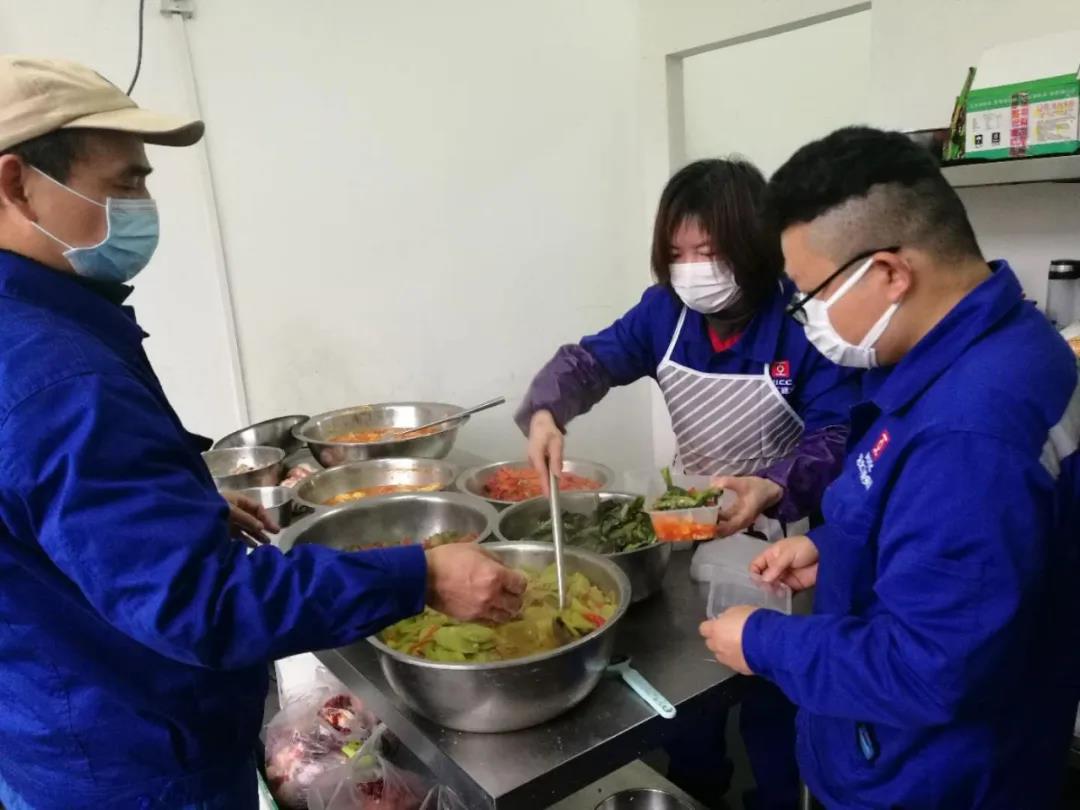 在完成施工任務后,郭慶波又與鄭幼芳、龔愛民、劉煥兵、龔昆及炊事員李淑華等同志一起,為在酒店隔離的80多位突擊隊員烹飪可口的飯菜。